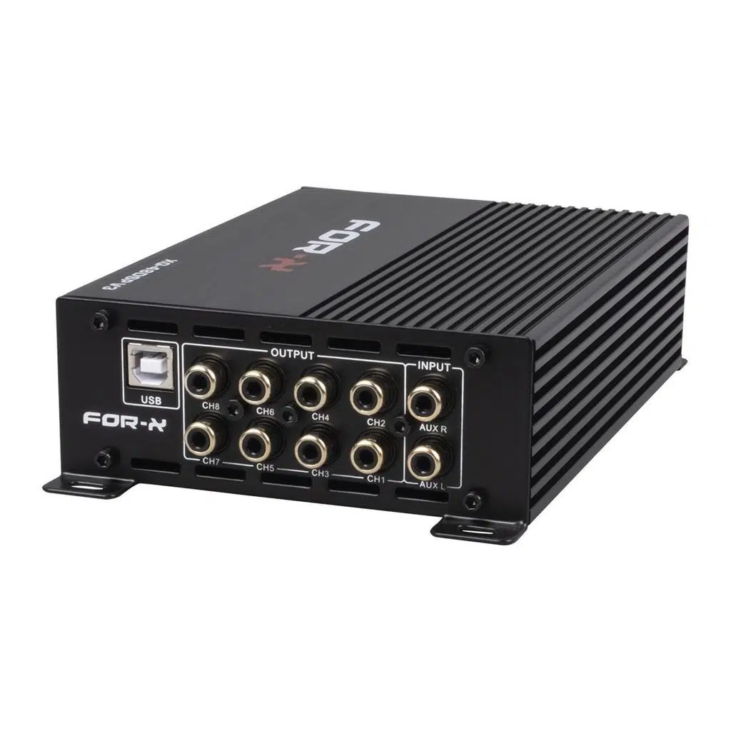 Active Range: >110dB S/N Ratio: >110dB Freq. Response: 20Hz-20K Hz Input Imp. : Low level 20K OHM, High level 240 OHM RMS Power @4OHM 4CHx35W, Peak 4CHx70W Sampling Rate: 48K Hz / 24 Bit Bluetooth 5.0 kit with USB input PC Software and Android Control