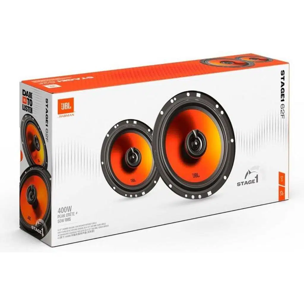 Enjoy the power and clarity of JBL with the Stage1 GEN2 62F, built for frontless installs using OEM grilles. These 2-way coaxial speakers pair a Plus One™ polypropylene woofer with a PEI dome tweeter for broad frequency coverage and high output.