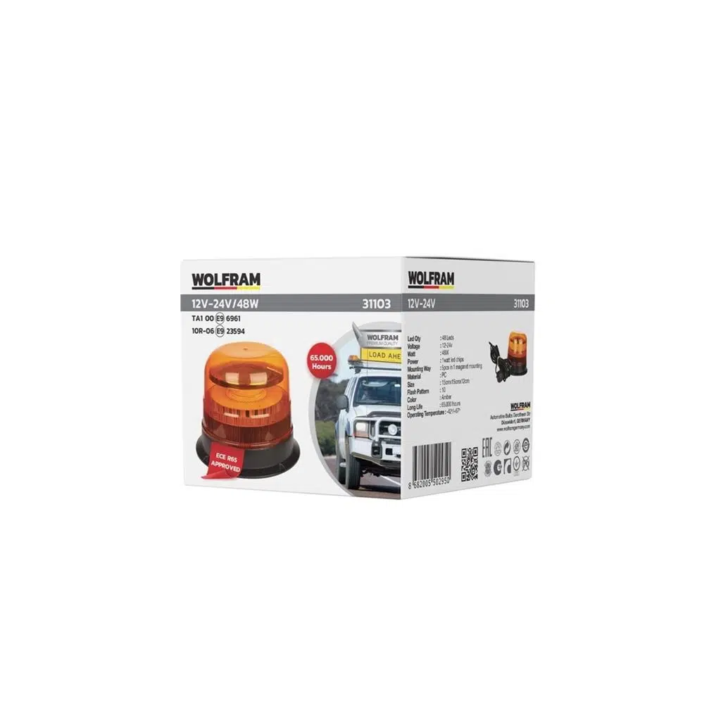 WOLFRAM LEDLİ DÖNER LAMBA MIKNATISLI ve VATUZLU 12/24Volt 48Watt