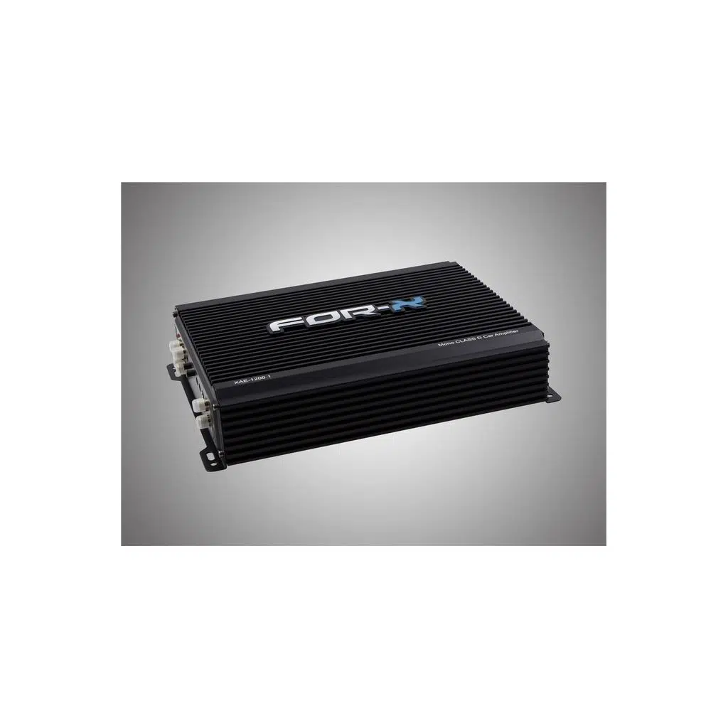 for-x xae-1200.1 mono amfi RMS POWER @4OHM 400Wx1CH RMS POWER @2OHM 600Wx1CH RMS POWER @1OHM 1200Wx1CH DIMENSIONS: 260x200x58mm;